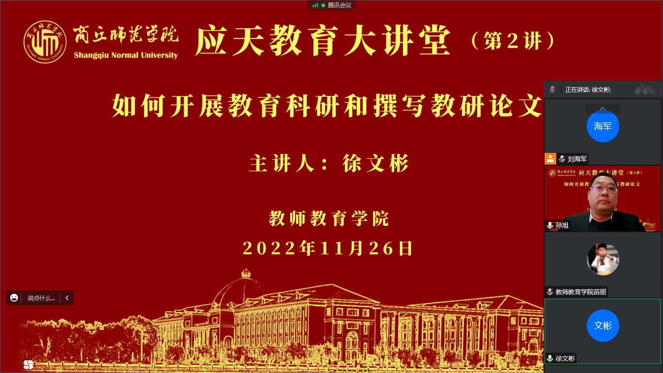 徐教授的讲座,既有理论又有案例,再授之以鱼的同时更注重授之以渔,授之以欲,对与会师生开展教育科研与撰写教研论文具有较强的指导意义。