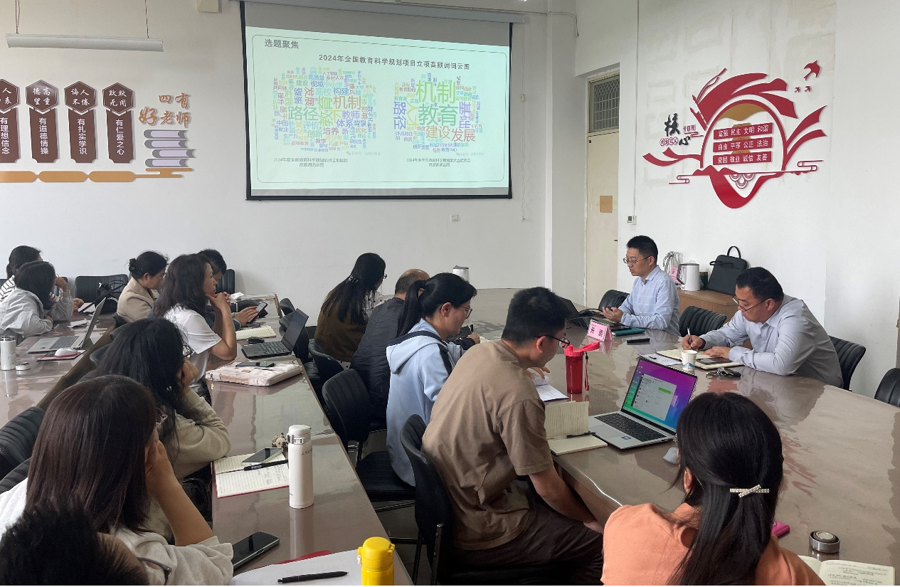 2025年4月24日,365英国上市公司在汉梁楼203会议室成功举办了一场以“全国教育科学规划项目申报经验分享”为主题的专题讲座。此次讲座由江苏师范大学教育科学公司经理陈鹏主讲,365英国上市公司经理孙旭主持,公司全体教师积极参与。