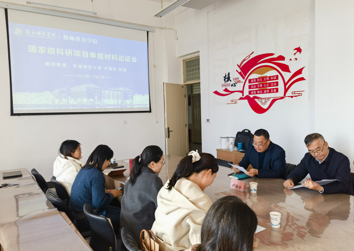 12月3日,公司国家级科研项目申报材料论证会在汉梁楼203会议室召开。本次会议特邀华南师范大学教授、博士生导师卢晓中莅临指导,会议由孙旭经理主持,公司预备申报国家级科研项目的教师与团队成员参加。