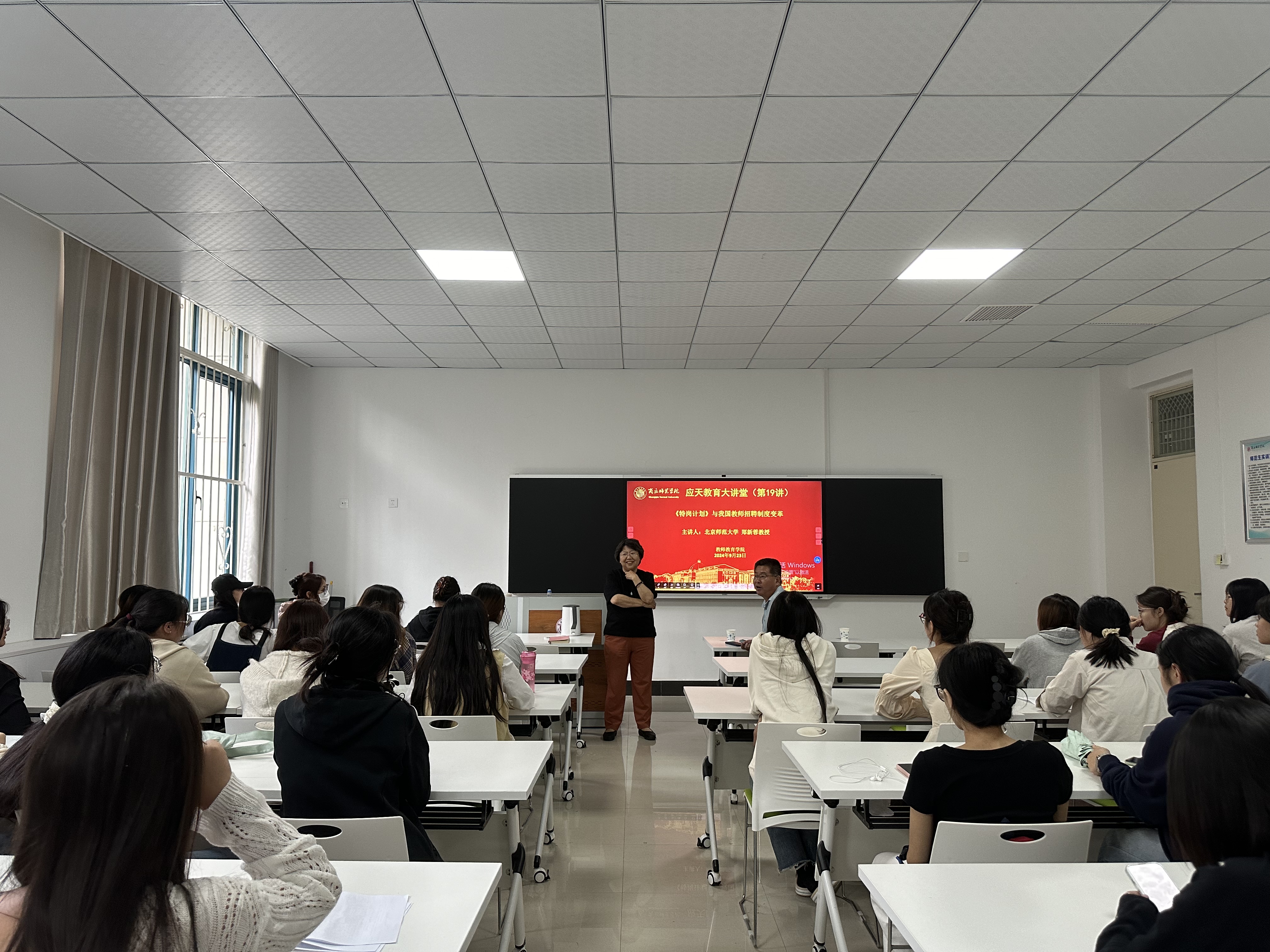 2024年9月23日,365英国上市公司有幸邀请到北京师范大学郑新蓉教授,于汉梁楼112室为全体师生带来了一场精彩的专题讲座。本次讲座以“《特岗计划》与我国教师招聘制度变革”为主题,吸引了众多师生的积极参与。讲座由公司党委副书记邱友谊主持。