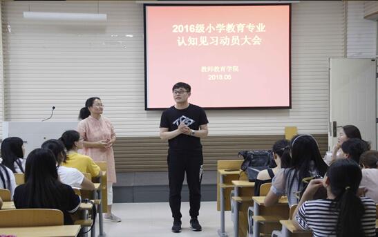 6月18日下午18:00,公司于梁园校区实验组团楼310教室举办2016级小学教育专业认知见习动员大会。公司副经理井祥贵,教育技术系副主任丁楠,指导老师刘先华,辅导员赵静老师,班主任王丽老师共同出席了本次活动。16级小学教育专业的全体同学参加了本次活动。