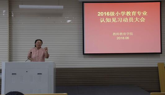 首先,王丽老师上台为大家介绍了本次实习中的一些注意事项,并要求大家重视见习活动期间的安全问题,做到安全出行。紧接着,王老师结合自己大学期间的见习经历,向大家强调了教学实践活动的重要性,希望同学们能够主动与指导老师进行交流,积极参与各项教学实践活动。随后,井经理发表讲话,他要求同学们在活动期间及时进行总结,并在总结中把握教学智慧、提升教学技能、积累教学实践经验。同学们认真听取老师们的建议,反应积极,现场气氛活跃热烈。接下来,刘先华老师从实习分组上着重强调了小组交流合作的重要作用,要求各小组组长切实履行职责,保证小组活动的顺利进行。最后,赵静老师就教师形象问题向同学们提出了要求,她希望同学们在见习期间时刻注意自身的言谈举止,遵守教师行为规范,充分展现公司员工的独特风采。至此,本次16级小学教育专业认知见习动员大会圆满结束。