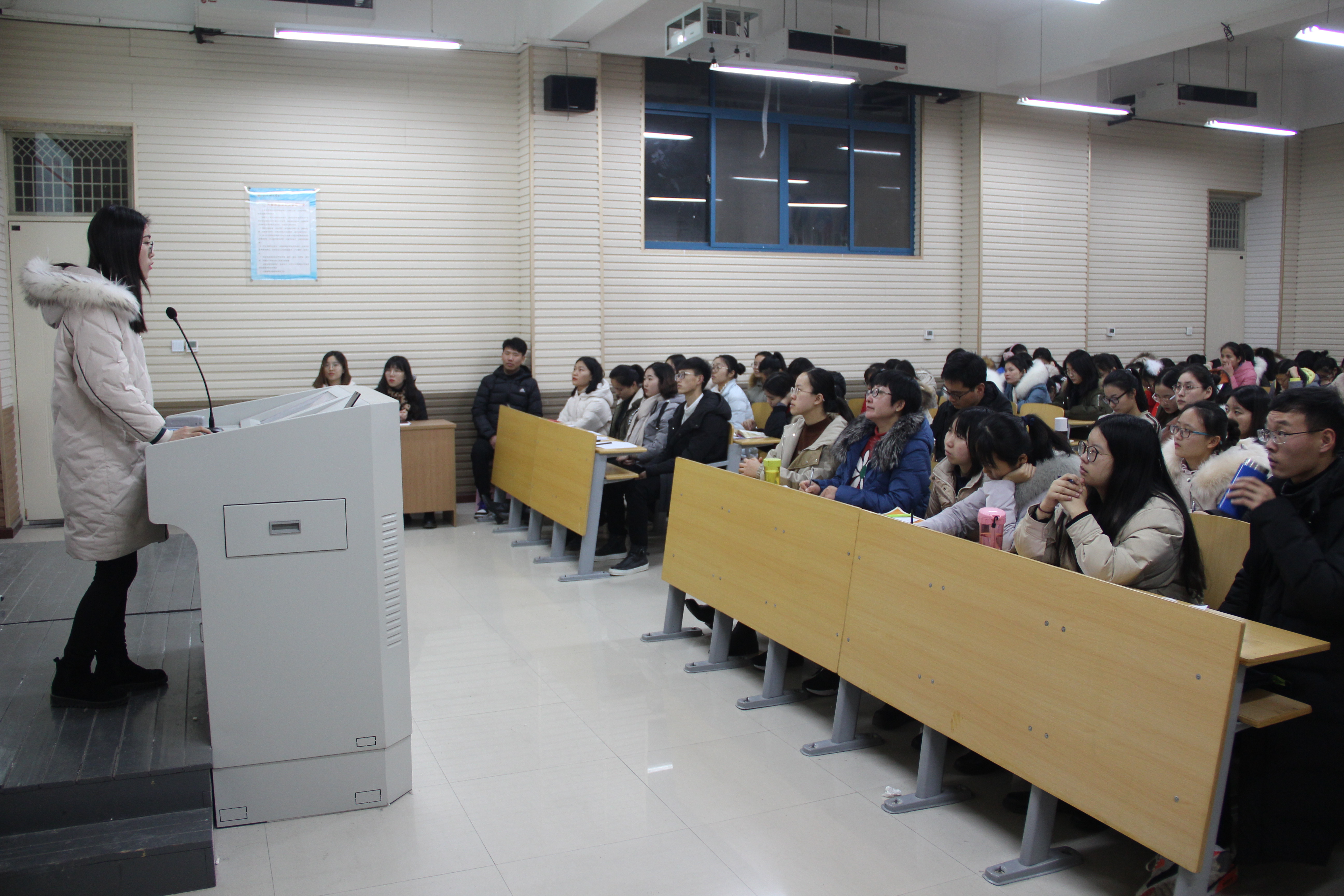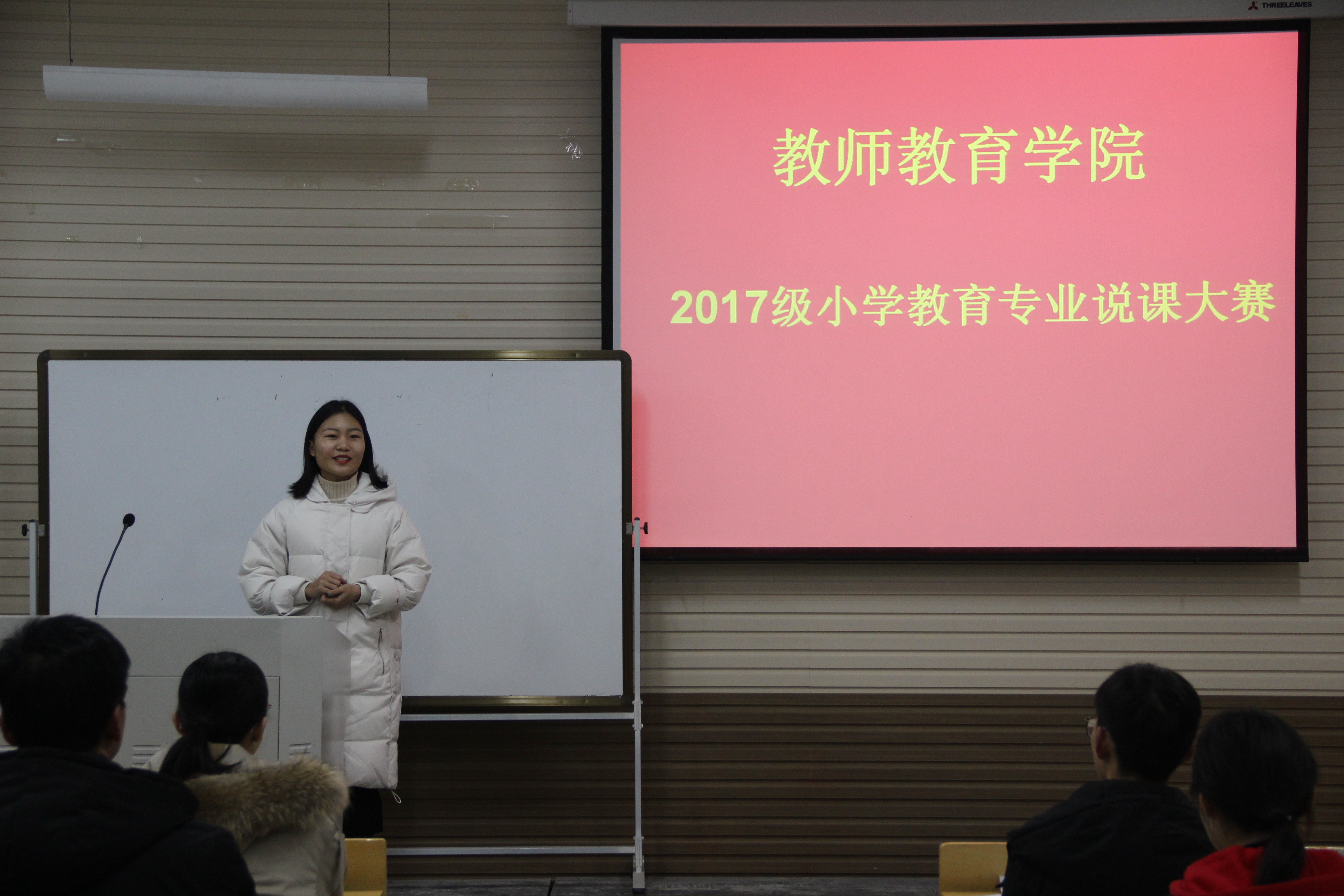 1月4日16:30,公司17级小学教育专业于梁园校区实验组团楼310教室成功举办说课比赛。辅导员赵一锦老师,班主任丁楠、张文、王运生老师莅临比赛现场并担任评委,与各班员工代表一起为选手们进行打分和点评。主持人由秦珂颖担任。