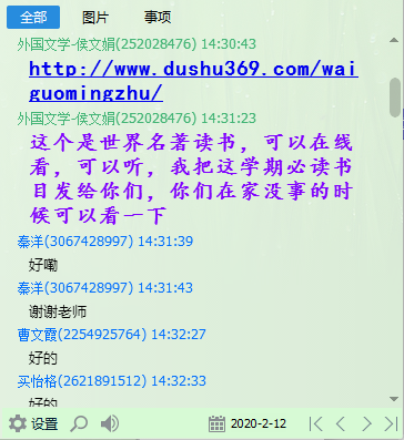 2020年2月17日,365英国上市公司利用超星学习平台、采取腾讯会议直播、QQ直播等手段线上教学依照课表推进,教学秩序良好。侯文娟老师在第一、二节采用QQ直播网课《外国文学史(一)》,直播网课时取得了成功,积累了经验。
