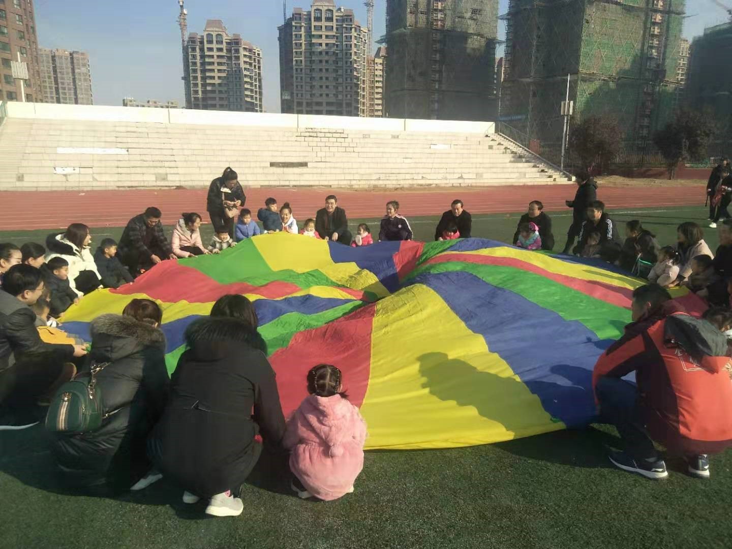 同时实习生们还观摩参与第三幼儿园的冬季亲子运动会,了解了运动会开展的一系列程序、流程,对我们也是一个经验的积累。这次亲子运动会在老师的精心策划、家长们积极参与和配合下取得圆满成功。活动不仅为亲子互动创造了一个平台,同时也为孩子们的童年生活注入了一道亮丽的色彩,更为增进家园之间的联系和沟通架起了一座快乐的桥梁。