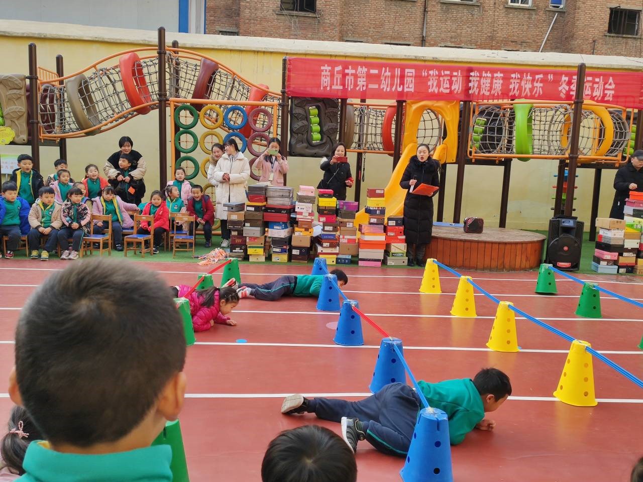 2019年12月6号,为增强幼儿身体素质,提高他们的身体免疫能力,掀起幼儿及社区居民参与冬季体育运动的热情,商丘市第二幼儿园举行了以“我运动,我健康,我快乐”为主题的冬季运动会。幼儿园将运动会分为小中大班分为三大阶段。此次活动主要有教师才艺展示、幼儿游戏穿越火线、跳绳比赛、堆堡垒等技能竞赛。