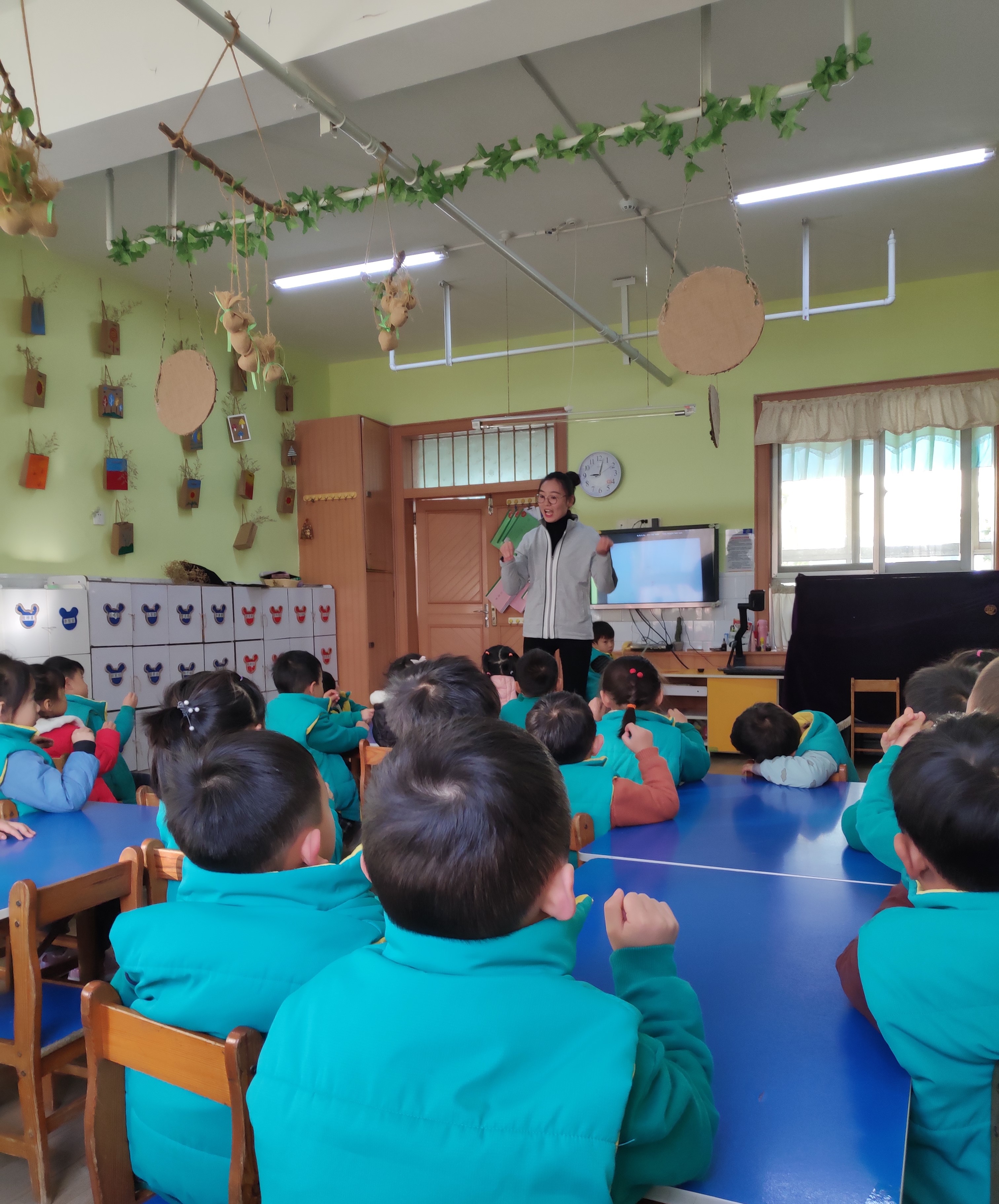 下午,同学们有幸参加了园内的听评课活动。此次听评课由苗九班的阮老师讲授,进行数学领域《今天是星期几》的教学活动。阮老师以提问的形式引入星期的话题,接着通过七张不同的小猴子图片辅助以语言串联成一首童谣,让幼儿对星期有了一个更深层次的认识。课堂过程中,阮老师教态自然,富有活力,语言生动准确,对整个教学过程的环节安排有序,且思路清晰;小朋友们的兴趣也都很高,课堂气氛活跃。活动结束后,同学们实习生与九个班的带班老师一起进行讨论评价。先是阮老师进行自我评析,随后是带班老师们发表自己的见解,建议妥帖得当且评析相对准确。期间各位实习生也提出了自己的意见和困惑,并请老师指导,最后由訾媛媛老师总结整节课的教学不足,大家积极讨论,交流方法,提出解决方案,并在以后的教学中避免此类错误,以提高教学水平。通过此次听课活动,使教师更加重视对教学的精力投入,注重改进自己的导学方法,完善自己的导教案设计,提高自己教学的水平,这对教师业务水平的提高、教学质量的提高是极为有益的。
