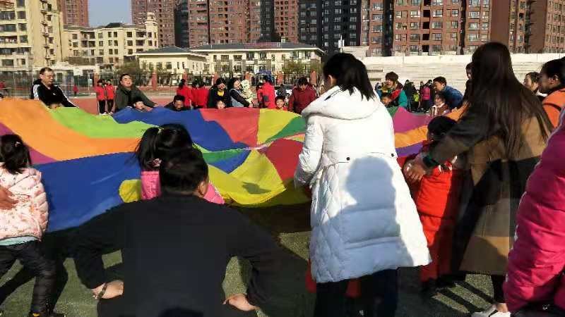 首先, 苹果老师先上来和小朋友们打招呼,与另外两位老师一起表演运动操,激发了小朋友们参加运动会的积极性,孩子们热情高涨。接着,苹果老师与另外两名老师一起带领小朋友们做运动操,活动身体。之后,苹果老师组织各班家长,老师和小朋友们玩彩虹伞,由苹果老师掌握开始与结束的时间,各班一起开始亲子运动,锻炼孩子们的反应能力,增强体质,也增加家长与幼儿接触,了解孩子,培养感情的机会。