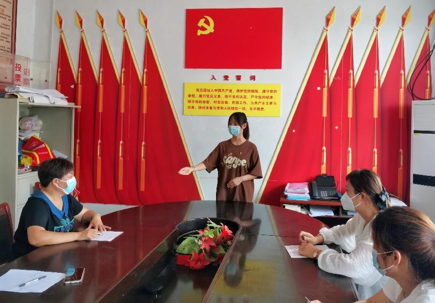 2020级员工党员袁源在舞钢市尚店镇丁庄村委会对部分村民进行了宣讲。她围绕村里的疫情防控工作和便民服务工作向村民们讲述了蕴藏着党的力量的家乡故事。
