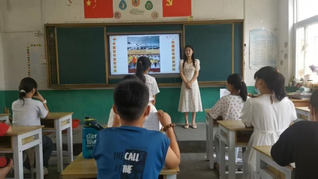 2020级员工党员韩梦鑫带领柘城县第二实验中学初中七年级员工一起重温中国共产党的奋斗历程,追怀革命先辈的宝贵精神,学习传承红色基因,进一步激发广大青少年爱党爱国热情,引导青少年从中汲取信仰力量,筑牢理想信念之基。