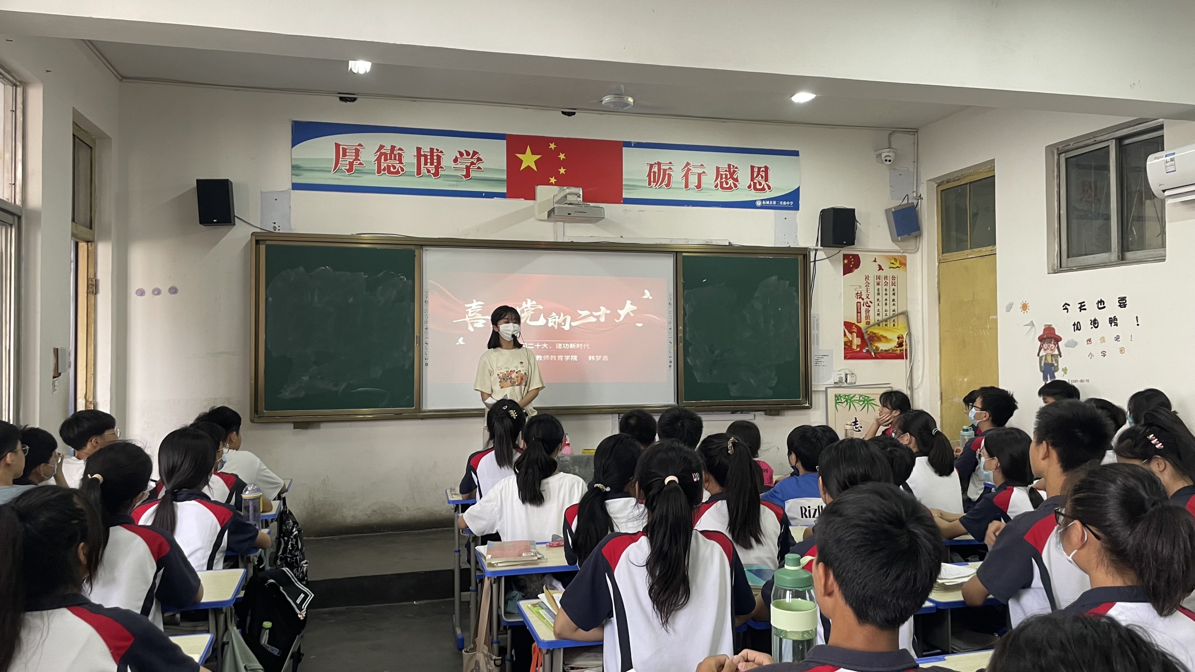 2020级员工党员郭康杰在柘城县伯岗镇一所农村中学旧教室对村里的七、八年级员工进行了宣讲活动。他详细讲解了国家关于疫情防控的一系列举措,引导员工们感受党和政府坚持人民至上和生命至上的防控理念,鼓励他们树立远大的理想信念和正确的学习观,为祖国强大贡献自己的一份力量。