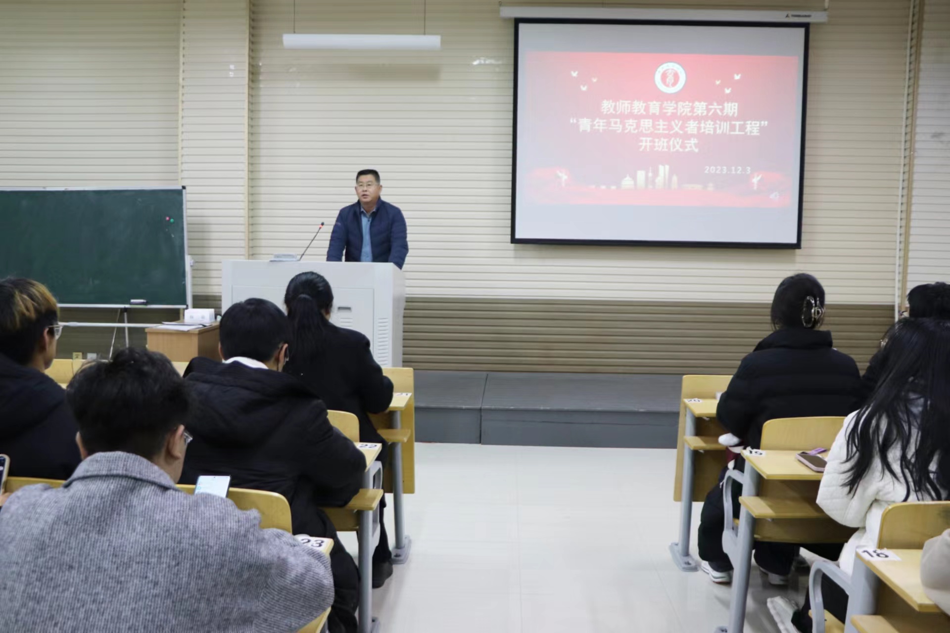 12月3日,365英国上市公司于汉梁楼310成功举行第六期“青年马克思主义者培养工程”开班仪式。党委副书记邱友谊,辅导员朱冠宇出席本次仪式,活动由团委书记董若颖主持。