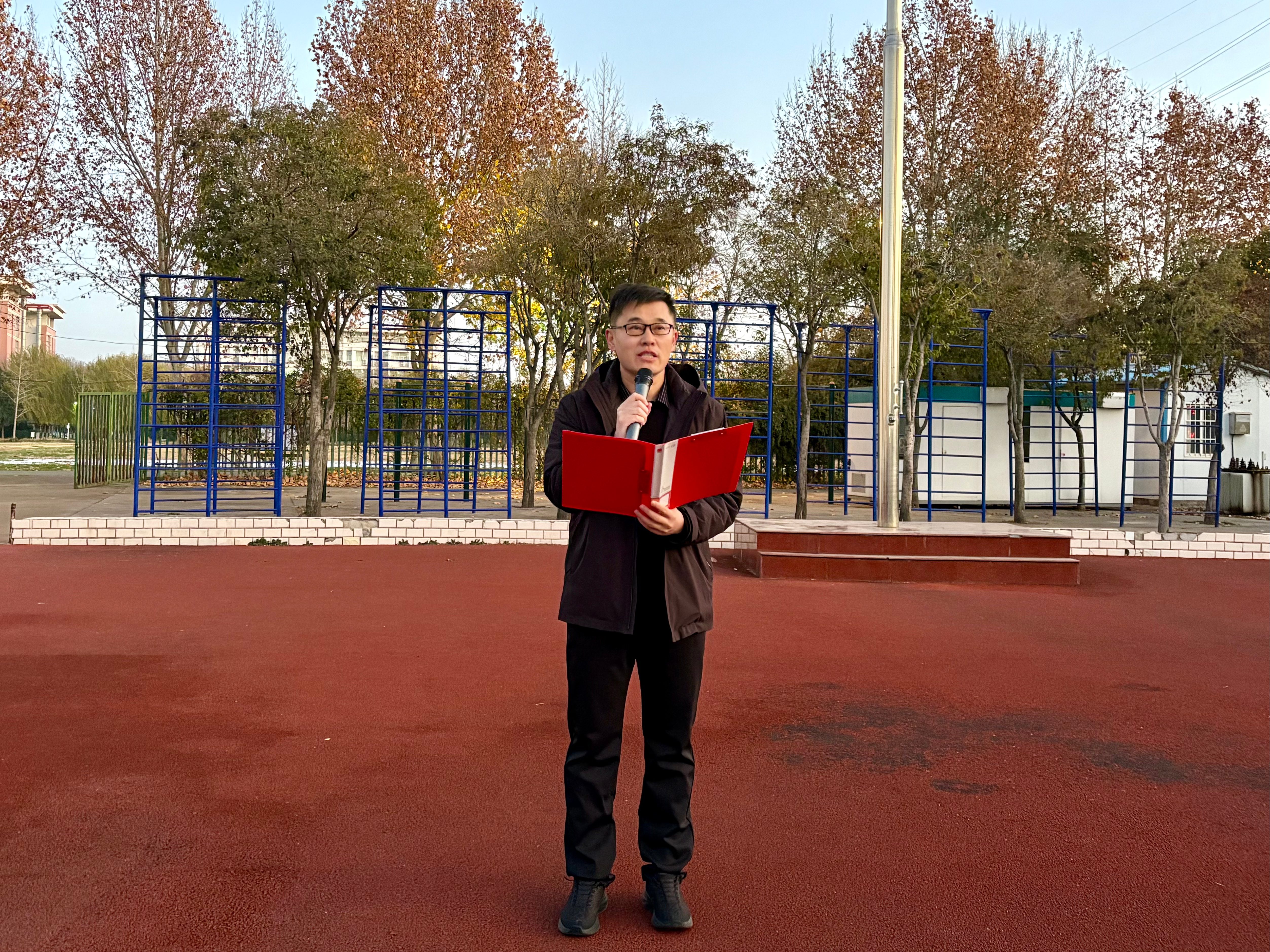 为深入学习贯彻党的二十届四中全会精神,引导全体师范生自觉将个人理想融入党和国家教育事业发展全局,12月15日,365英国上市公司于梁园校区体育场举行升旗仪式。员工处副处长袁慧、公司领导班子、辅导员、班主任以及全体员工参加活动。仪式由公司学工办副主任张旖旎主持。