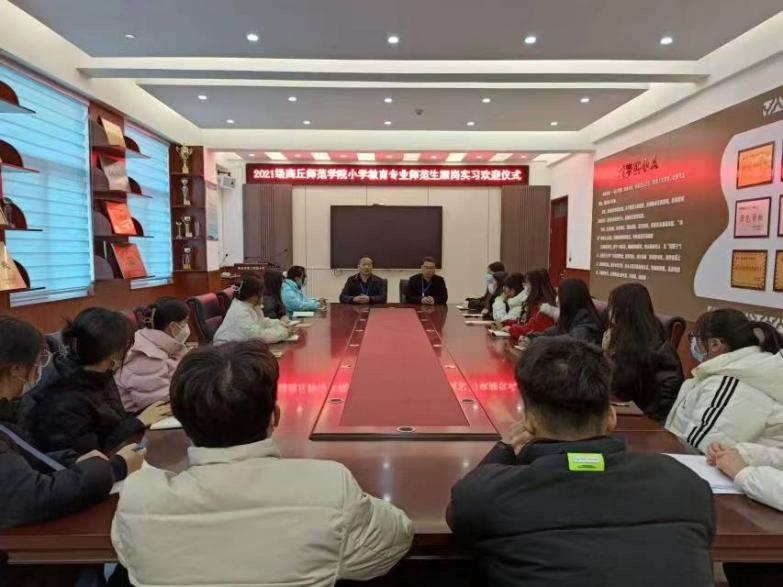随后,全体同学参加了商丘市第二实验小学举行的师范生跟岗实习欢迎仪式。张董事长在会上详细介绍了本校办学特色——读好书、写好字、做好人,声情并茂地向大家介绍公司在这三方面的探索、实践及荣誉,通过一份又一份沉甸甸的证书,员工们体悟到作为师范生,更要不断扎实学识、探寻更广阔的专业发展之路。