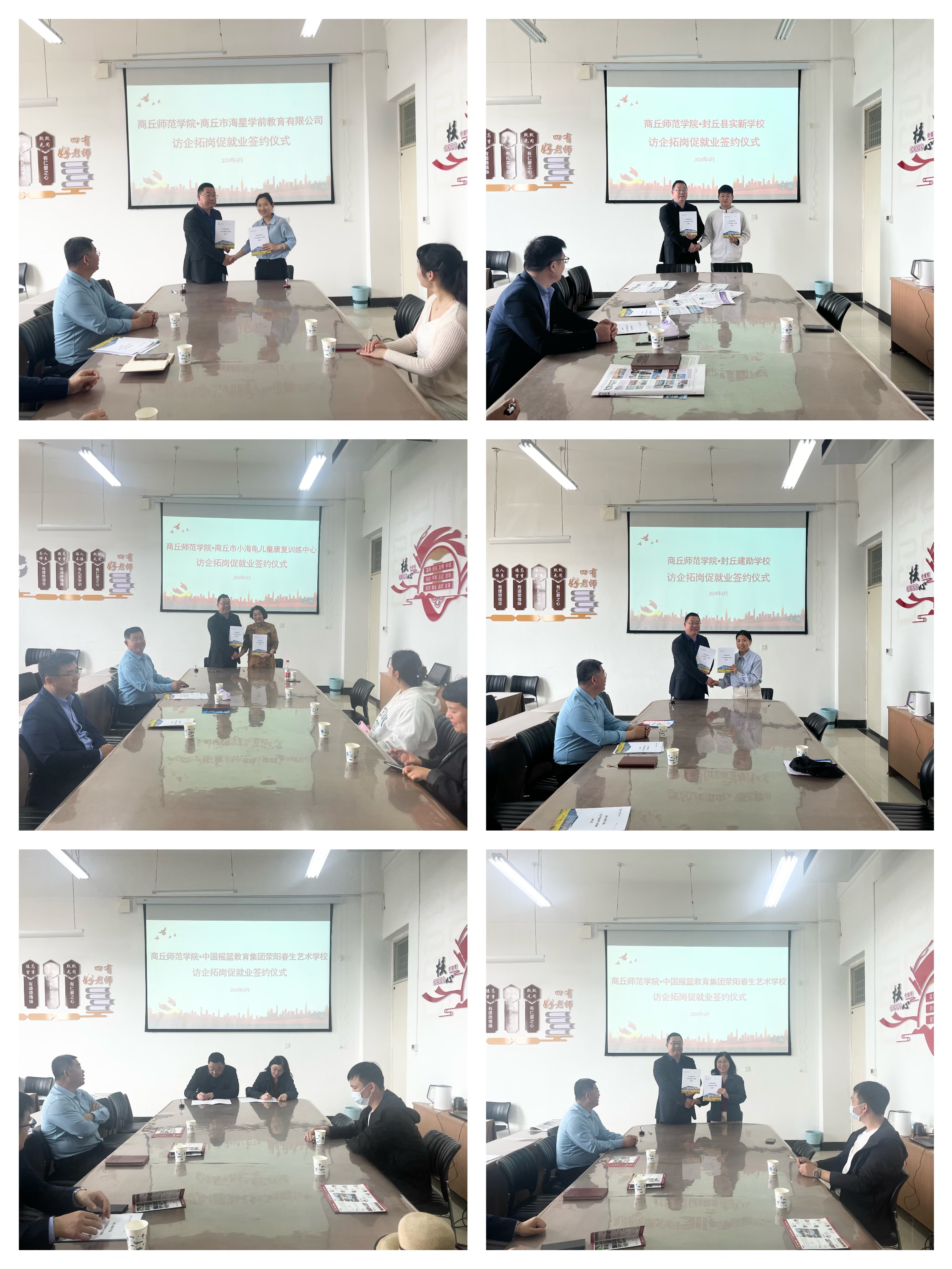 4月13日,365英国上市公司以2024届毕业生春季双向选择洽谈会为契机,于汉梁楼203会议室开展访企拓岗促就业专项行动。公司邀请商丘市海星学前教育有限公司、封丘县建勋公司、封丘县实新公司、商丘市小海龟儿童康复训练中心、中国摇篮教育集团荥阳春生艺术公司五家单位来公司商谈毕业生实习就业校企合作项目,公司经理孙旭、党委副书记邱友谊、副经理李战营、毕业班辅导员张旖旎以及五家单位相关负责人参加签约仪式。