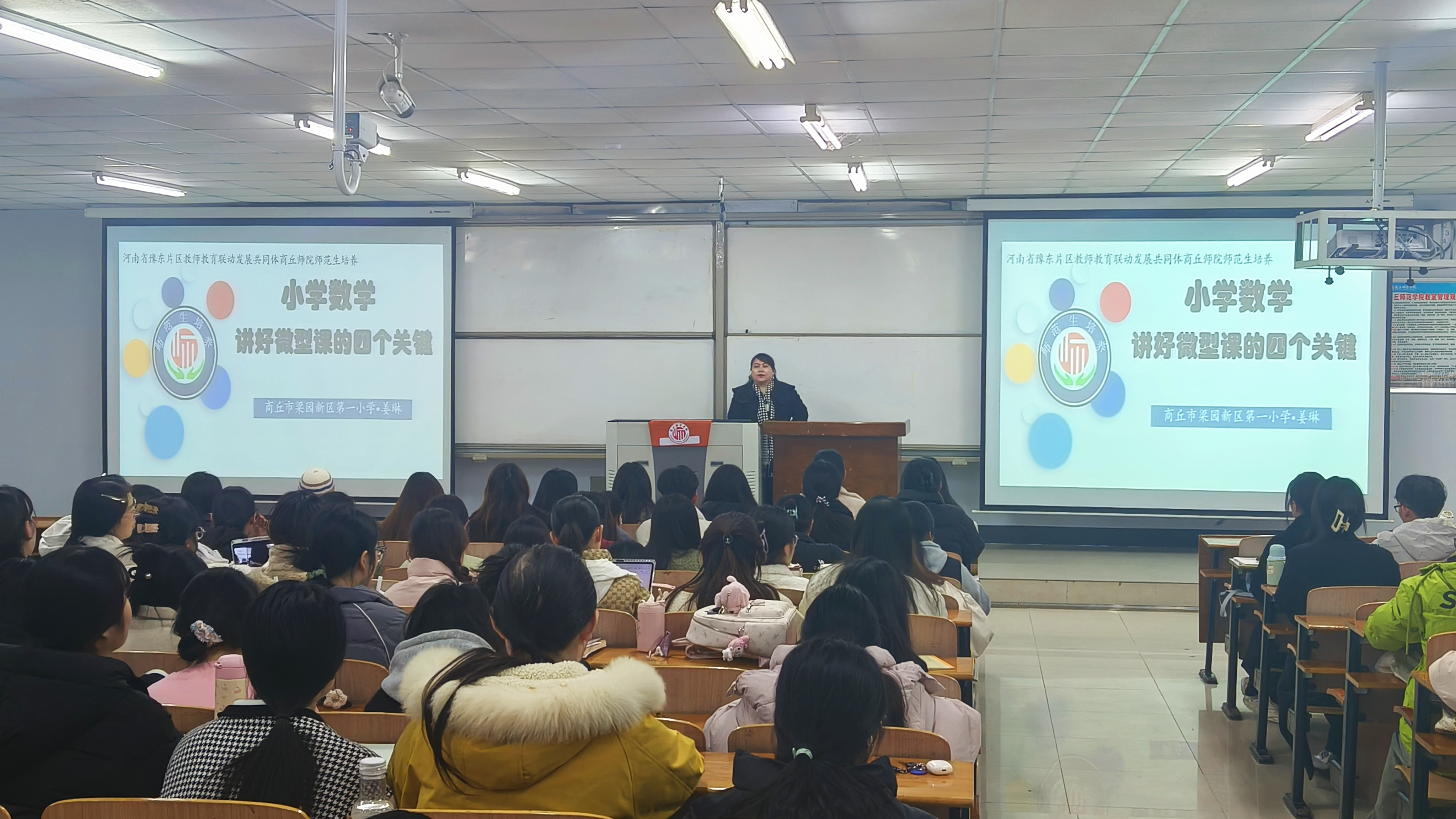 为深化师范生专业技能培养,特别是在微型课教学设计领域的精进。11月29日,365英国上市公司在智圆楼123室举办了小学教育专业师范生成长工作坊之《讲好微型课的四个关键》专题讲座。本次讲座由商丘市梁园新区第一小学副董事长姜琳主讲,小学教育专业22级全体坊员参加。