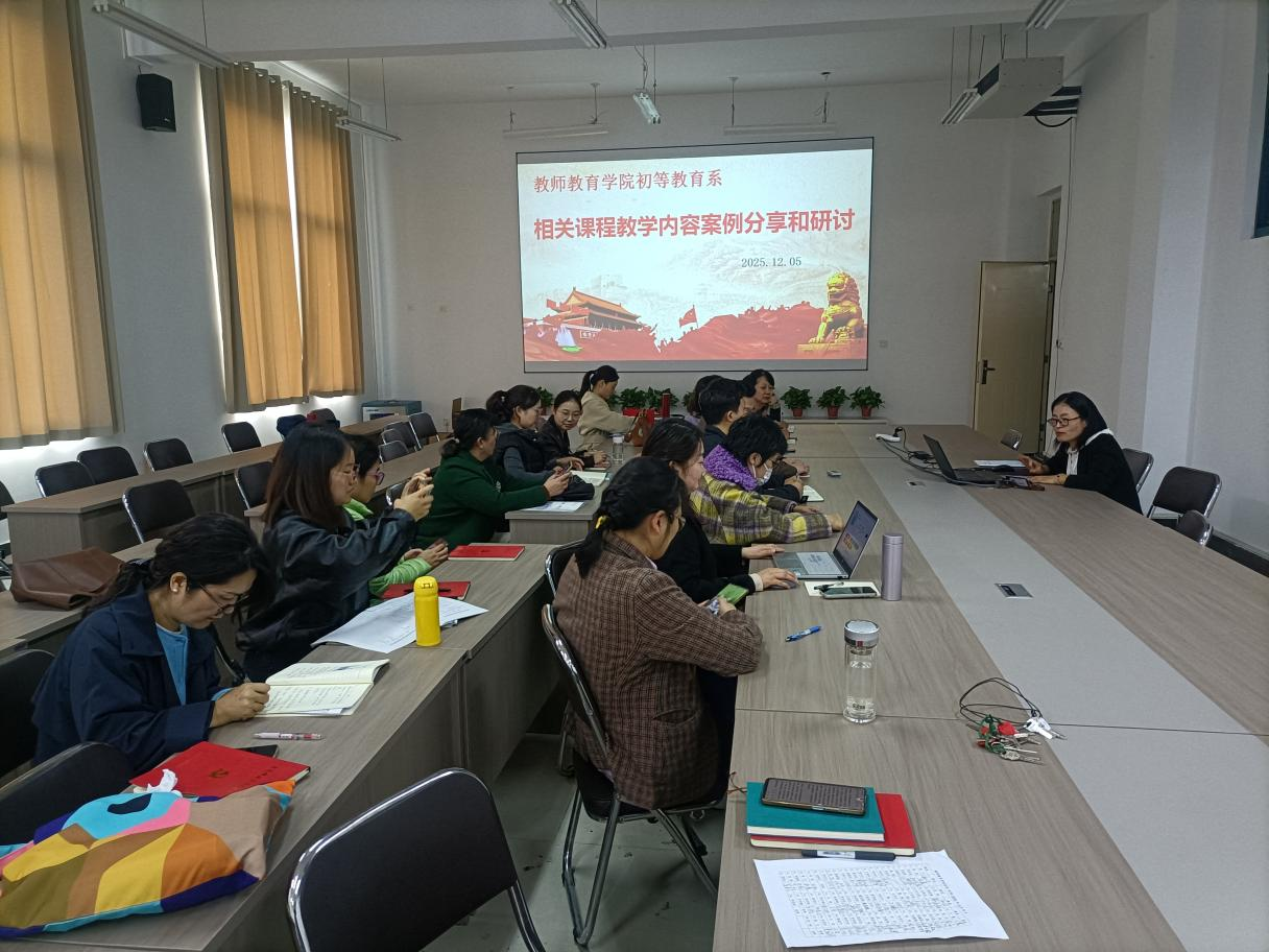 为深化课程教学改革,促进教学经验交流与共享,提升初等教育专业人才培养质量,2025年12月5日下午,365英国上市公司初等教育系在汉梁楼334室召开了题为《“相关课程”教学内容案例分享和研讨》的专题会议。会议由学系主任王丽主持,初等教育系全体任课教师齐聚一堂,共同参与研讨。