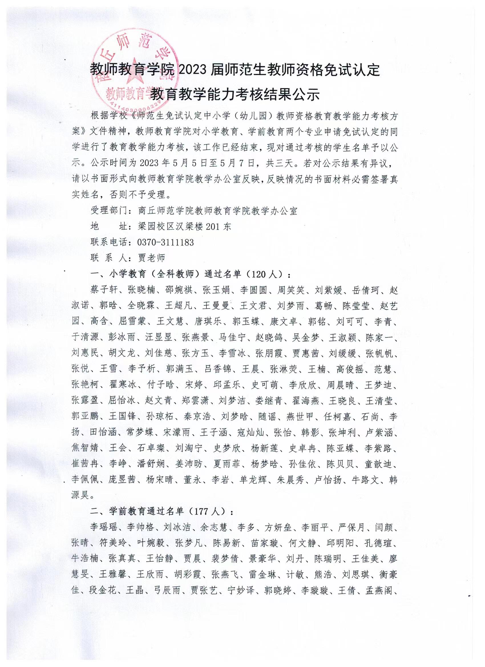 2023届师范生教团队格免试认定公司产品能力考核结果公示